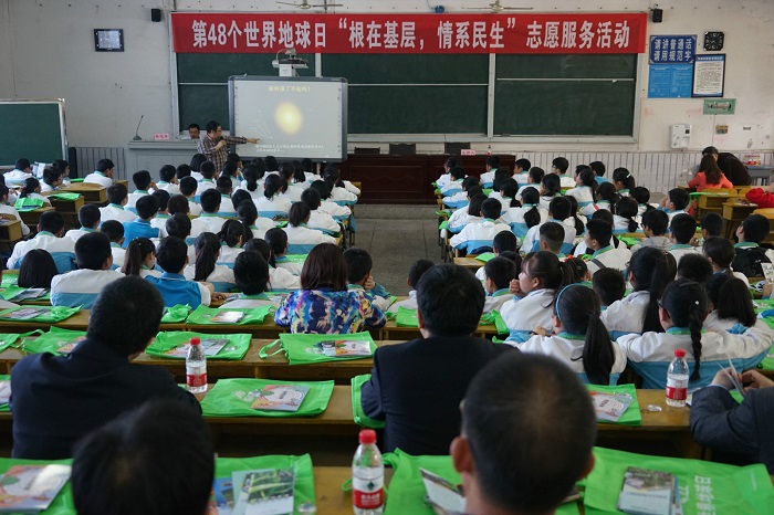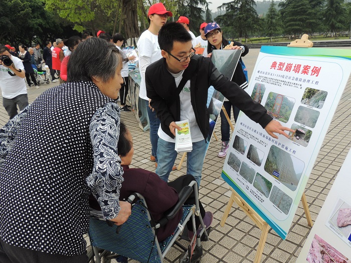 为纪念第48个世界地球日,中国地质灾害防治工程行业协会与中国地质环境监测院(国土资源部地质灾害应急技术指导中心),中央国家机关精神文明建设协调领导小组,国土资源部地质环境司,中国地质调查局科技外事部、直属机关党委,四川省地质矿产勘查开发局,乐山市人民政府,中国地质学会环境地质专业委员会,四川省地质环境监测总站等单位,联合开展“根在基层、情系民生”科普志愿服务活动。