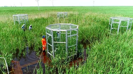 自然资源部中国地质调查局青岛海洋地质研究所近年在辽河三角洲等湿地探索开展了生态地质调查工作,工作区范围包括-6米等深线至陆域湿地范围,涉及芦苇、翅碱蓬等典型湿地植被生境,研究对象包括水、沉积物、大气、生物等多个圈层,工作手段包括地质取样、温室气体监测、地表高程监测、碳循环评估、侵蚀淤积调查监测、水质调查等。