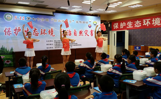 8日-9日,活动宣传组来到湖北省秭归县三峡希望工程小学举行防灾疏散演练和防震减灾教育,向参加演练的1300多名师生、家长赠送了防灾知识手册和医疗急救包。学校采取类似猜灯谜的有奖问答方式让孩子们参与互动活动。