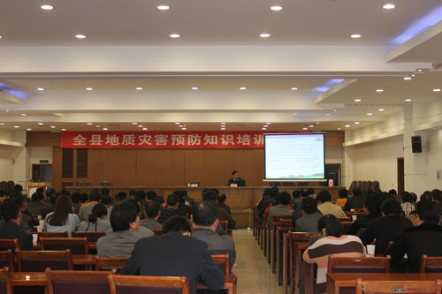 ? ? ? 结合近年来安吉县地质灾害发育现状、类型、特征、分布情况等,两位主讲人从安吉县实际出发,有针对性的从“突发性地质灾害应急处置、安吉县山区切坡及临坡建房的地质灾害防治”两个方面,对安吉县地质灾害现状、类型、特征等进行了系统梳理,对如何应对突发性地质灾害,如何做好切坡建房的选址及山区切坡建房及临坡建房地质灾害防治要点等进行了演示和解说。深入浅出的讲解赢得了与会人员的强烈反响和一致好评。