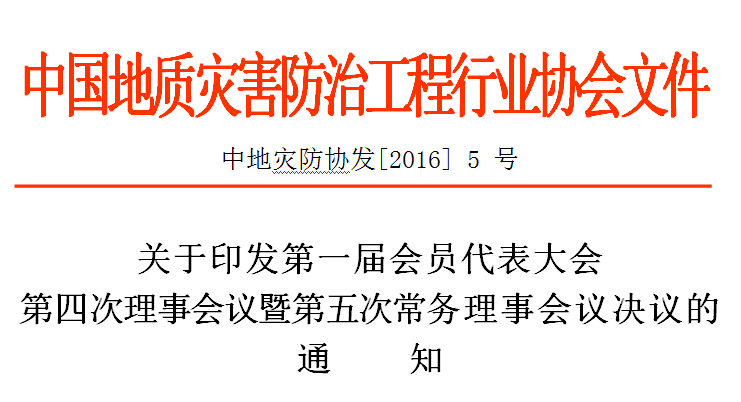 中国地质灾害防治工程行业协会第一届会员代表大会第四次理事会议暨第五次常务理事会议各项议程已按程序表决通过,现将会议决议予以印发。