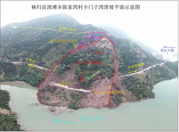 ? 卡门子湾滑坡位于长江北岸支流湖北省秭归县泄滩河左侧陈家湾村,总体积约50万立方米。2019年12月10日下午4时50分许,滑坡中下部38万立方米出现整体下滑,部分滑体滑入泄滩河,造成乡道、集镇供水管道及380伏高压线中断,滑坡区柑橘园损毁。由于滑坡变形发现及时、监测预警有效,临滑处置果断,迅速疏散了滑坡影响区范围内果农、行人及车辆,成功避免了人员伤亡,但该滑坡仍存在再次滑动的危险。