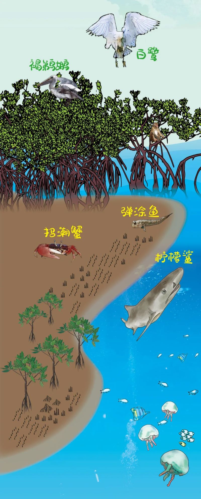 以上生物形象来源于红树林保育联盟《红树慢漫画》