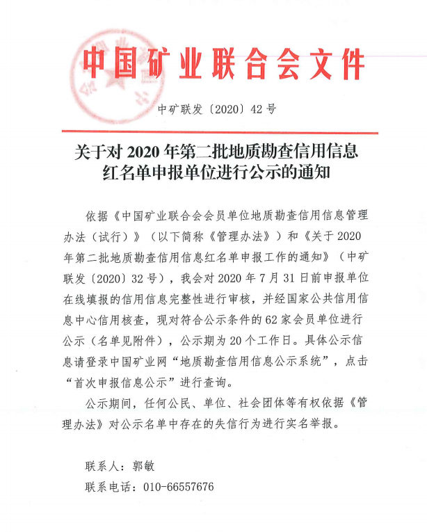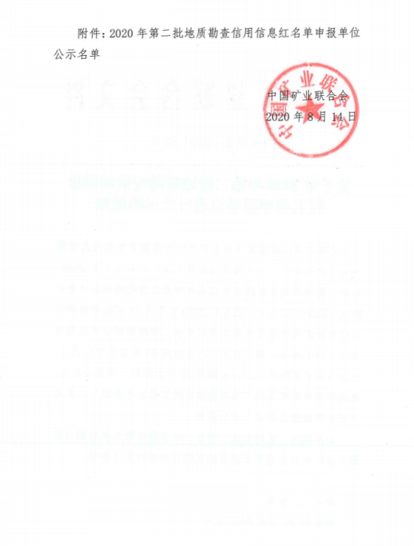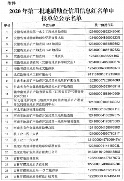 2020年第二批地质勘查信用信息红名单申报单位进行公示的通知