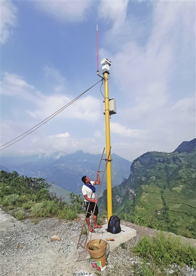 担任地质灾害监测员的彝族小伙某色拉洛伸了个懒腰,从床上爬起来。按照他这天的工作安排,要去自己负责的隐患点巡查一次。早饭后,走过一片苞谷地,先巡查一下地灾隐患点并作了巡查记录,又来到地质灾害自动化监测仪器面前查看。虽然不懂这些仪器,但他知道这是用来监测滑坡变形,是用来保护村民和牛羊安全的,他有?;さ脑鹑巍W源?月底成都的研究所为村里装上了这些地灾自动化监测仪器,某色拉洛感觉轻松多了,过去无论天晴还是下雨,他每天都要巡查一次,一到雨季更是寝食难安,现在如果不遇上特大暴雨,他一周甚至十天半个月才会去查看一次。淳朴的某色拉洛笑着说:“领导和专家在我村子边的地质灾害隐患点装上了高级的监测仪器,天上有卫星看着,地上有报警器,家里有电视监控器,专家还给我的手机里装上了APP。我现在随时随地可以看到我看管的滑坡,再也不用像过去那样提心吊胆了。”