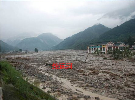 文家沟泥石流发育在“5.12”特大地震断裂带上,方量巨大,为国内外罕见的特大型泥石流。文家沟沟口位于绵竹市清平乡场镇北(绵远河上游)约500m;主要由主沟和两条支沟组成,整个冲沟流域面积约7.81km2。主沟长约3.25km,从沟口至沟源沟床坡降为80‰-460‰,岸坡坡度为35-48°。“5.12”地震后滑坡碎屑将文家沟原有沟道完全掩埋,堆积厚度在30-80m,总方量约5000万方。2010年8月13日强降雨诱发泥石流灾害,冲出方量达450万方。