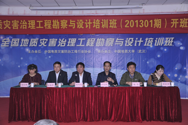 开班仪式由中国地质大学(武汉)继续教育学院书记杨伦主持,协会副会长兼秘书长田大佑、中国地质大学(武汉)副校长赖旭龙、中国地质调查局地质灾害处处长李铁峰、中国地质大学(武汉)继续教育学院副院长赵祖辉等出席开班仪式,协会秘书长田大佑在开班仪式上发表讲话。