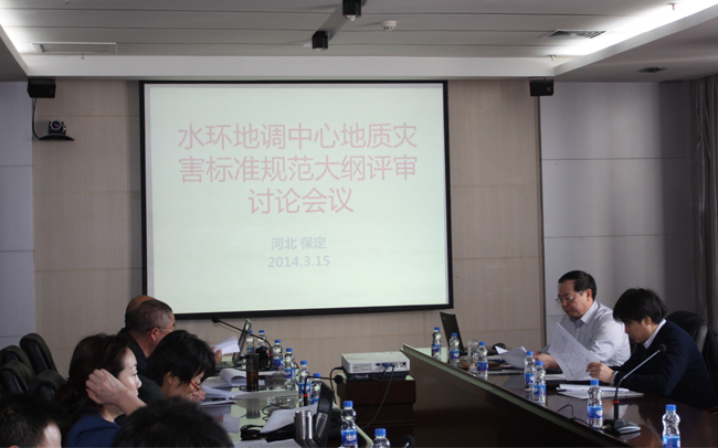 2014年3月15日,水环地调中心组织?“地质灾害标准规范编制大纲评审讨论会议”。参会人员包括水环中心、中国地质环境监测院、甘肃省地质环境监测院、北京地质研究所、北京市勘察设计研究院有限公司、航天科工惯性技术有限公司的专家和技术人员。